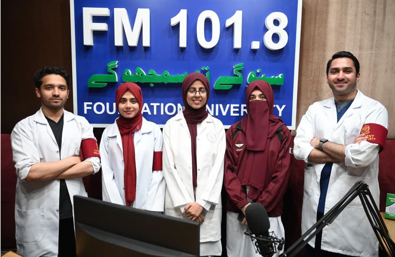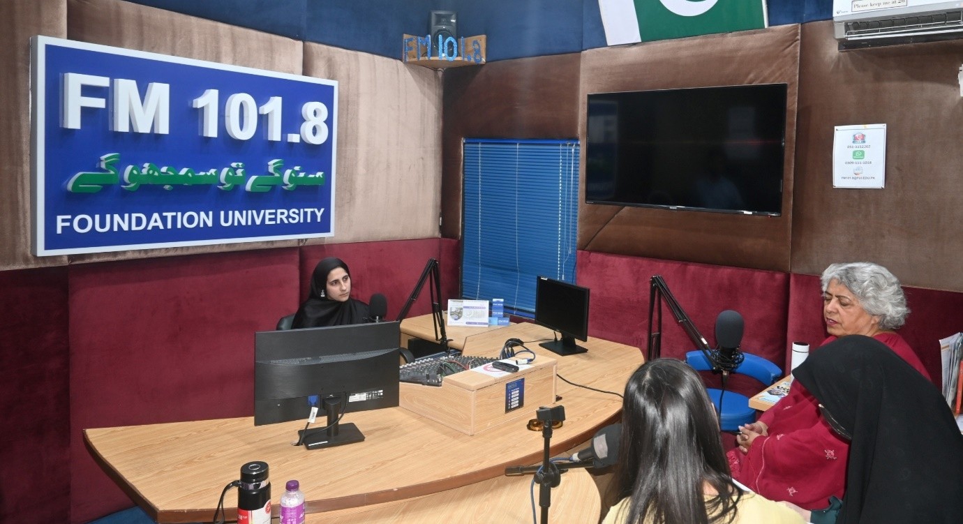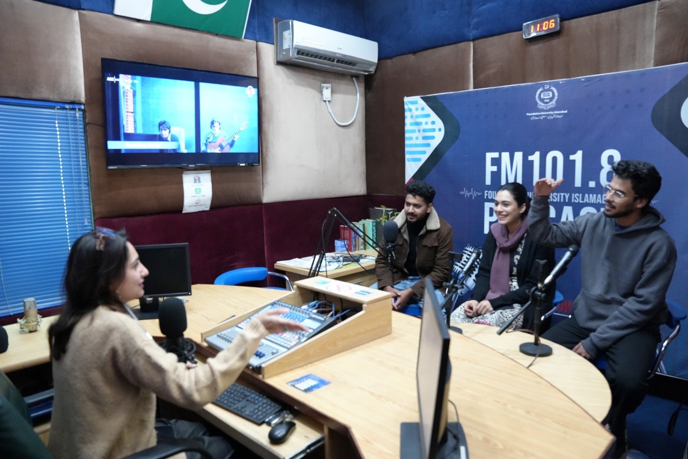 FM 101.8 MHz, established in 2017 at Foundation University Islamabad, serves as a dynamic learning lab for emerging media talent. With 12 hours of transmission from 8:30 AM to 8:30 PM, Monday through Friday, the station informs, educates, and entertains through news, discussions, and vibrant student-led shows. From Promoting Pakistan to A Pleasant Morning Show, and from FUI-ITES creativity to Health Studio inspiration, the station offers diverse content. It delivers sports excitement, classroom energy, faculty stories, Folk Rung colours, global beats, new hits, and evergreen classics. From powerful radio-casts to Incredible Pakistan, FM 101.8 keeps listeners engaged all day. A skilled team and state-of-the-art technology transform young voices into listener Favorite sounds. Built as a modern campus radio, it features advanced studios and professional production facilities. Students receive hands-on training in production, scriptwriting, anchoring, editing, and creative development. Through radio shows and regular podcasts, learners manage everything from concept to distribution, gaining an immersive broadcasting experience.