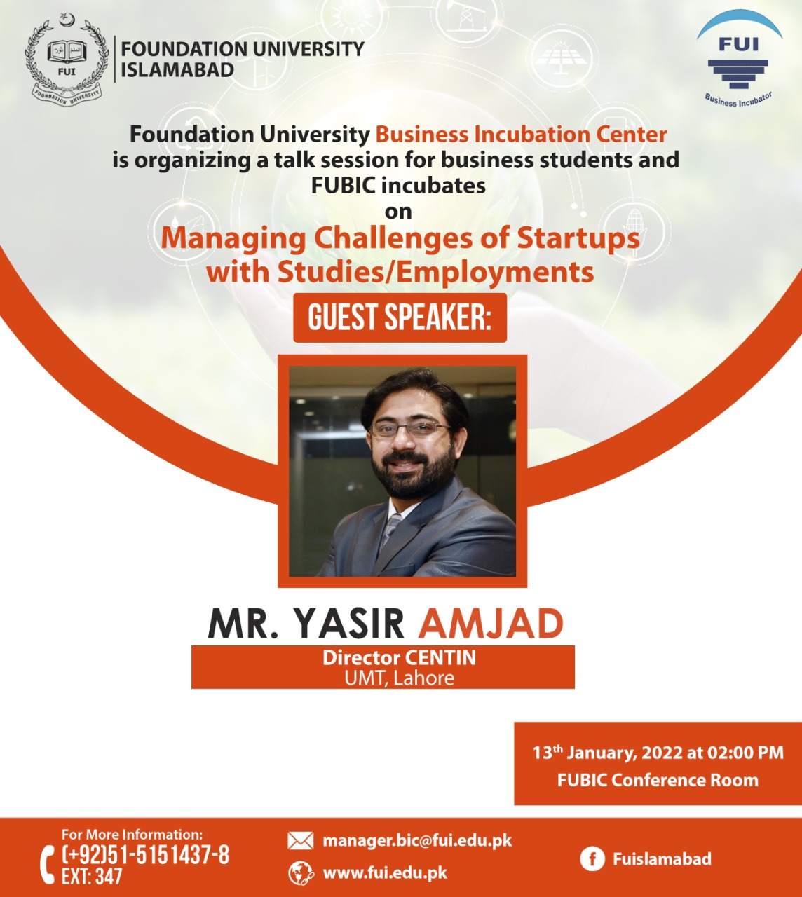 | 2 | Mr. Yasir Amjad | Director Entrepreneurship Center | UMT, Lahore |