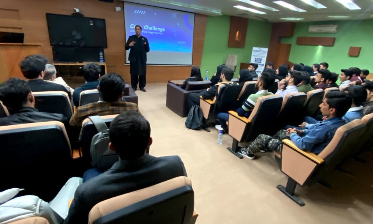 Foundation University Business Incubation Center (FUBIC) awareness seminar delivered on 15th February, 2023 by Manager FUBIC Syed Taimoor Hassan, to the students of BS Aviation, FUSST. He introduced FUBIC, its facilities and all the activities to mentor them towards starting their own startup with the help of FUBIC.