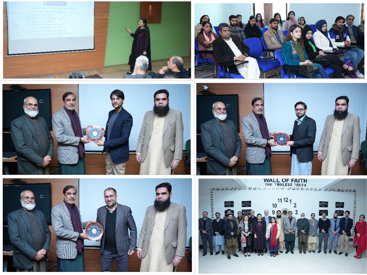 The External Assessment Team diligently examined the Postgraduate forms, student and faculty files, prepared in accordance with HEC guidelines. Additionally, interactive sessions were conducted with MS, PhD scholars and faculty members. The exit meeting was chaired by Brig. Dr. Abdul Ghafoor, Pro Rector / Director FUSST. The assessment team provided key insights and valuable recommendations, highlighting areas for further enhancement in the quality of the postgraduate programs. These findings, derived from a comprehensive review, will significantly contribute to the continuous improvement and elevation of the programs’ overall quality.
